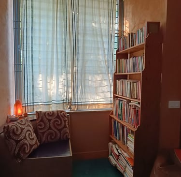Every now and then, we host informal reading sessions with children from the neighbouring homes. We speak to them about stories, about questions, about curiosity. We believe that reading, especially in a shared setting, can nurture resilience, imagination, and self-trust. Moving forward, we hope to create structured workshops and programs around books—spaces of dialogue, reflection, and collective learning.